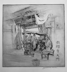 “Such a day. One of the big days of my life. I went in car with J. Sohn to get Mrs. Denton to go to see Rakusan Tsuchiya . . . . We took a gentleman from the Doshisha School as interpreter. Miss Denton made me come all the way back for my etchings. The gentleman looked me up in Who’s Who. . . . [After showing Rakusan her etchings, Rakusan] bowed low and said his master [Seiho Takeuchi] would etch as I etch if he saw my country. I start lessons tomorrow from him.”